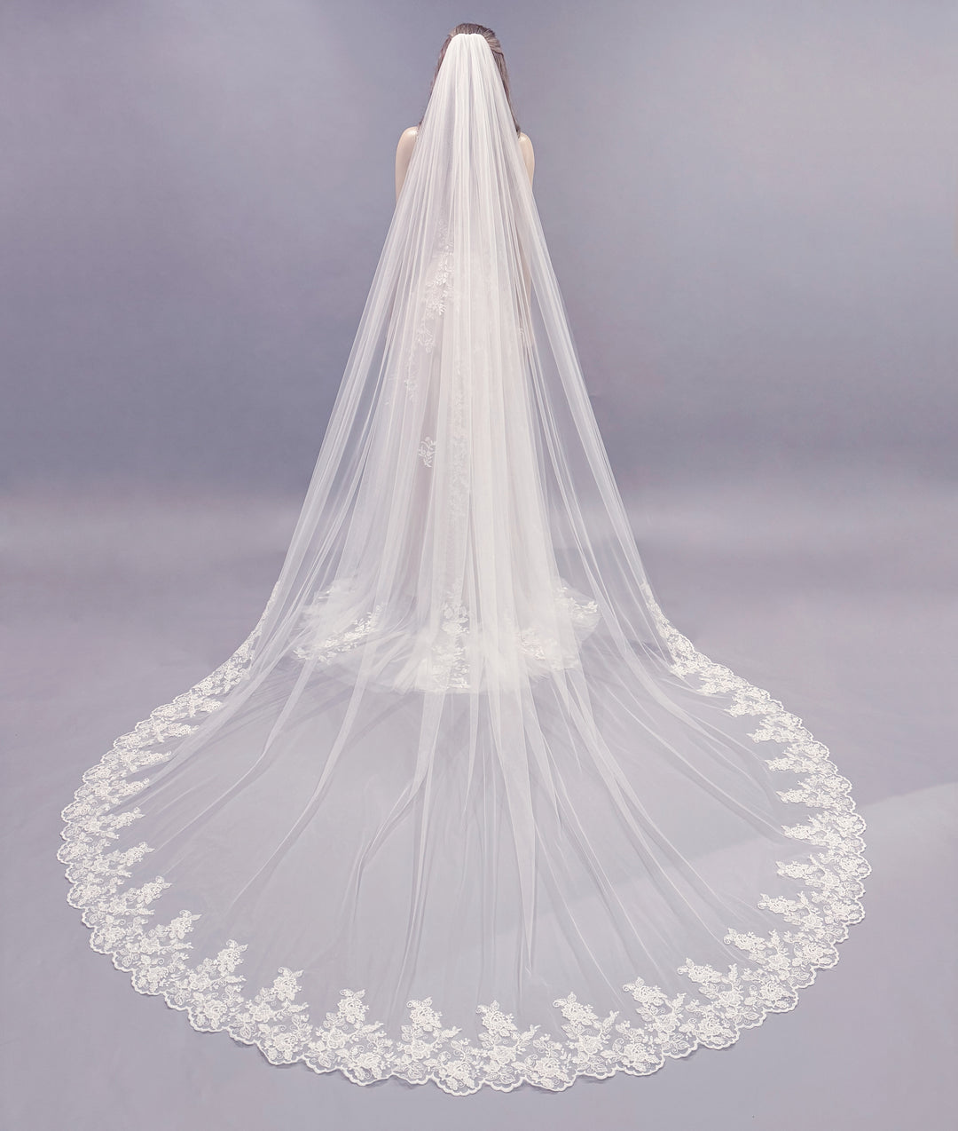 Bridal Mantilla veil alencon lace V040 - white/ivory